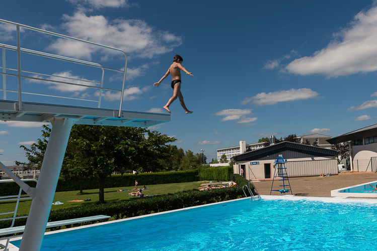 - une fosse à plongeon avec tremplin et plongeoir de 3 mètres