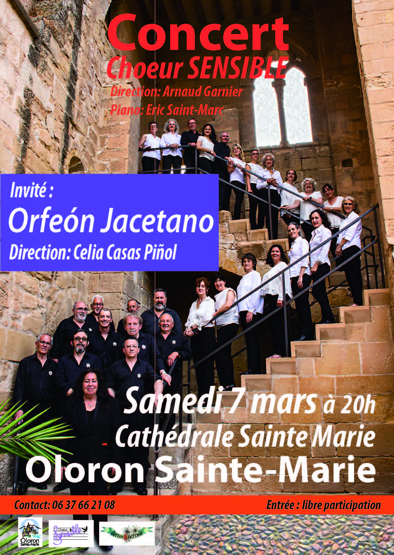 Le Chœur Sensible d'Oloron dirigé par Arnaud Garnier, possède également un répertoire varié qui invite au voyage avec des chants traditionnels et populaires du monde, chants sacrés, gospels, contemporains et aussi liturgiques chantes a capella ou accompagnés au piano, avec une toute nouvelle collaboration, par Eric Saint Marc pianiste organiste.