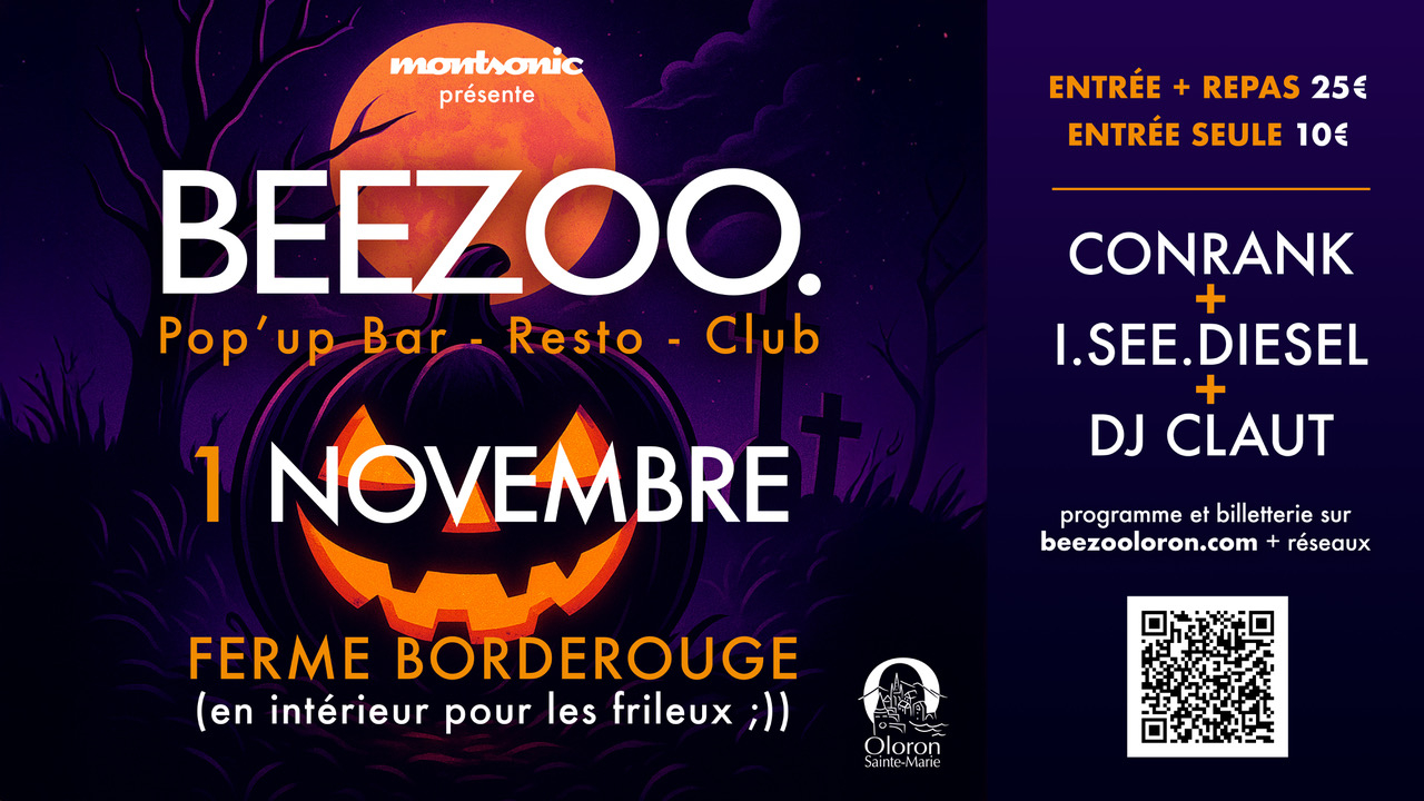 La 7ème édition Beezoo est un Halloween plein d'entrain : pur fun dans un lieu magnifique, La Ferme Borderouge. Le soirée House, Techno, Drum ’n Bass et Dubstep avec DJ I. SEE. DIESEL ( UK ), DJ CLAUTE (FRANCE), et l’incroyable CONRANK ( UK ).