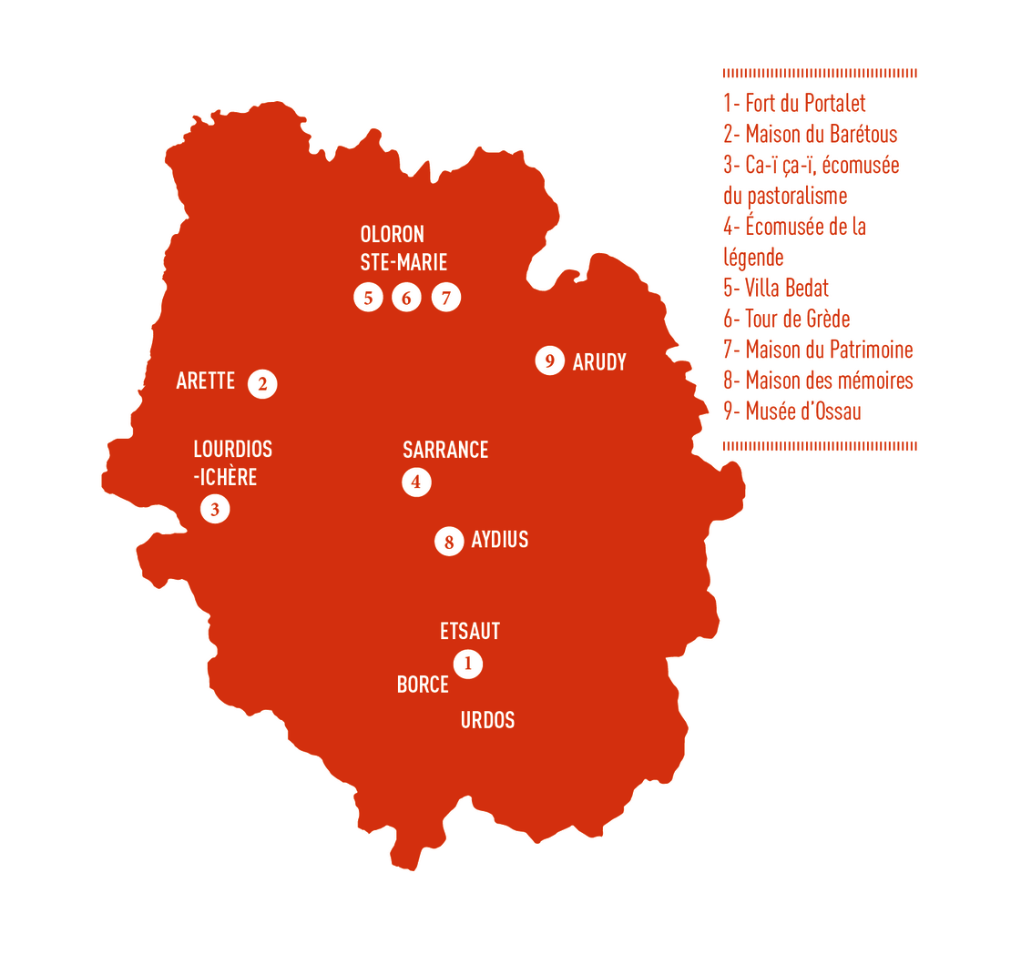 10 espaces mettent en scène le réseau souterrain de la Pierre Saint-Martin, la Grotte de la Verna, le séisme d’Arette de 1967, une remarquable collection d’objets anciens en bois et en pierre, le pastoralisme, l’histoire des hommes de la vallée et celle des Mousquetaires.