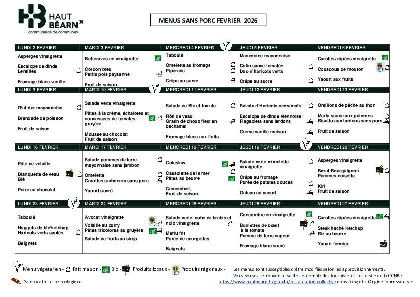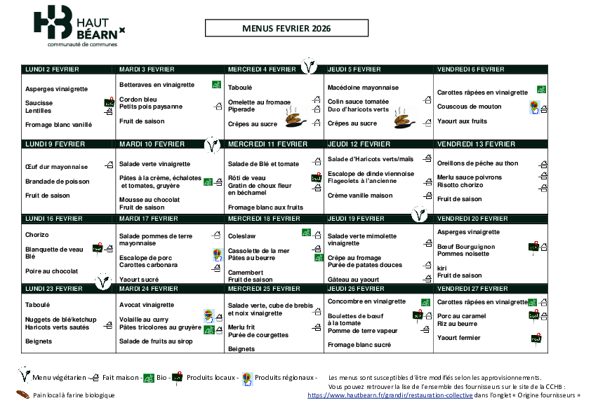 La restauration collective est une compétence facultative exercée par la Communauté de Communes du Haut-Béarn.